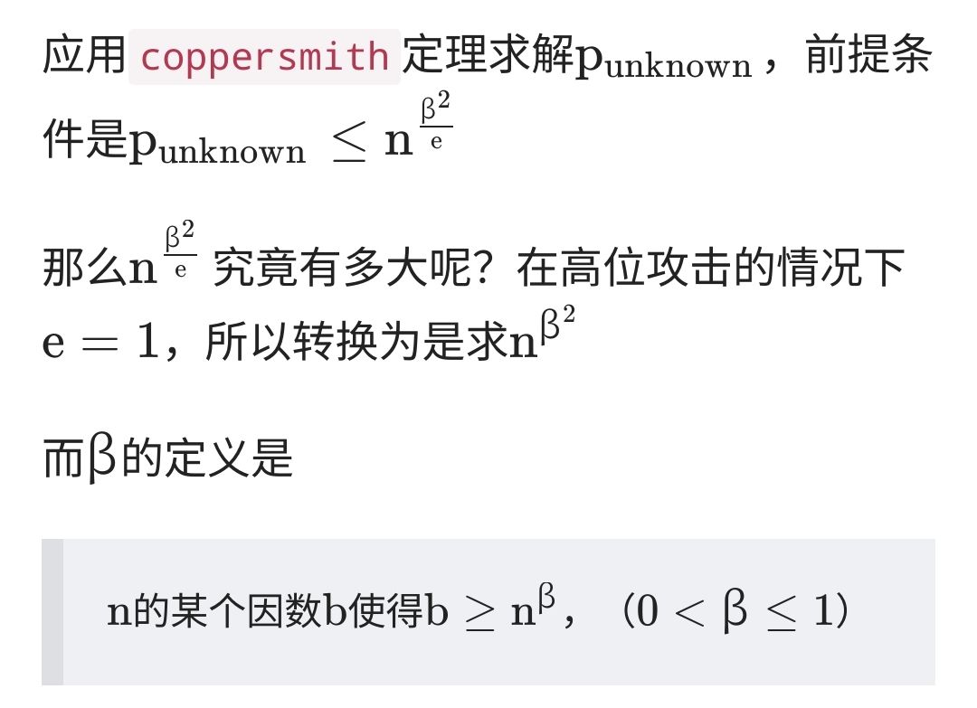 beta:是一个参数,它与X的位数相关。在这个例子中,$beta = 1$,表示我们要找到一个大小小于$X^{1\over {beta}}$的整数根。